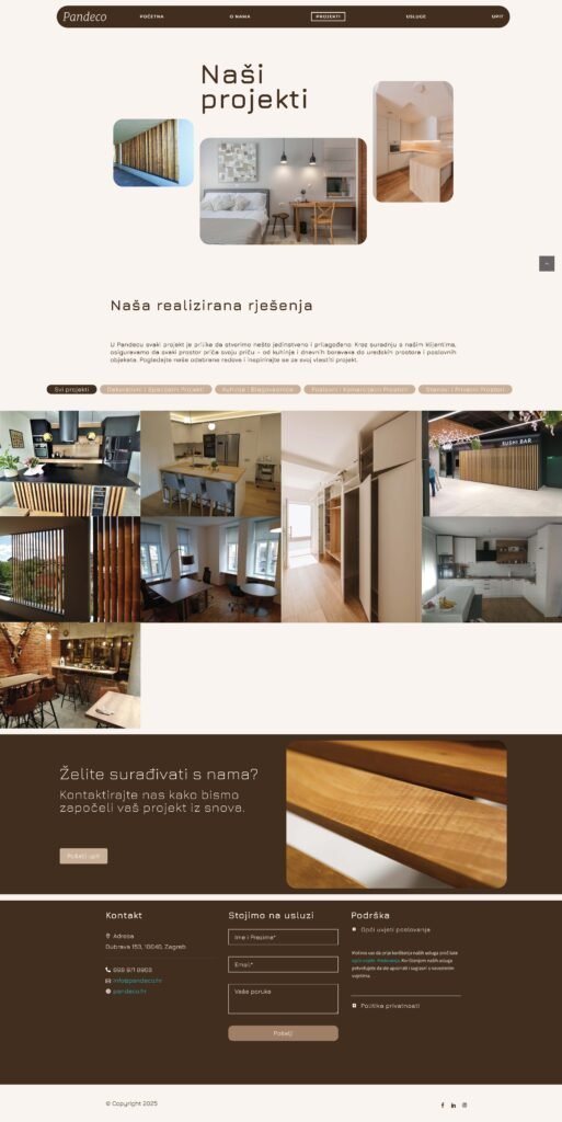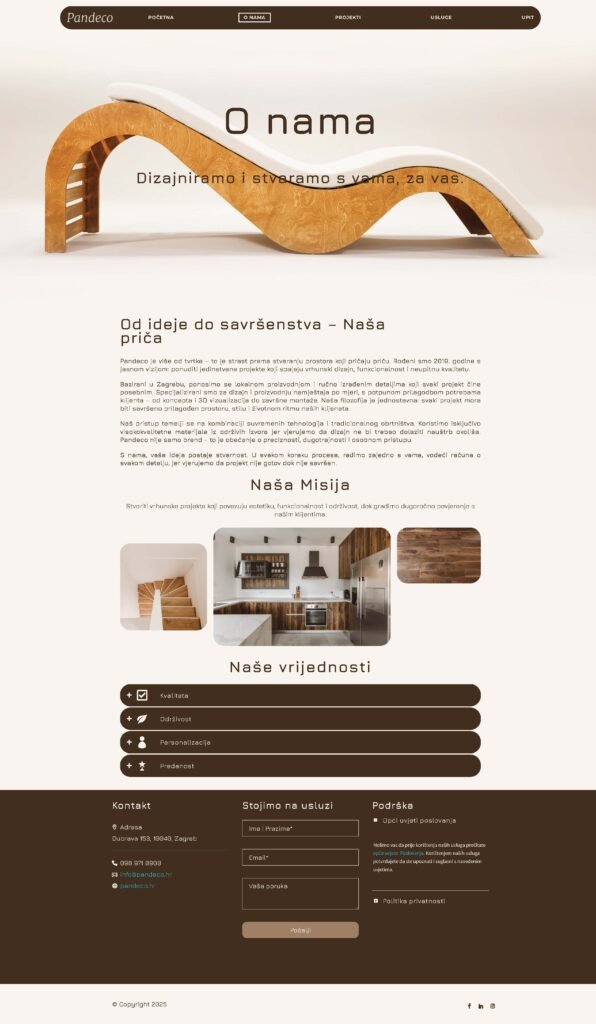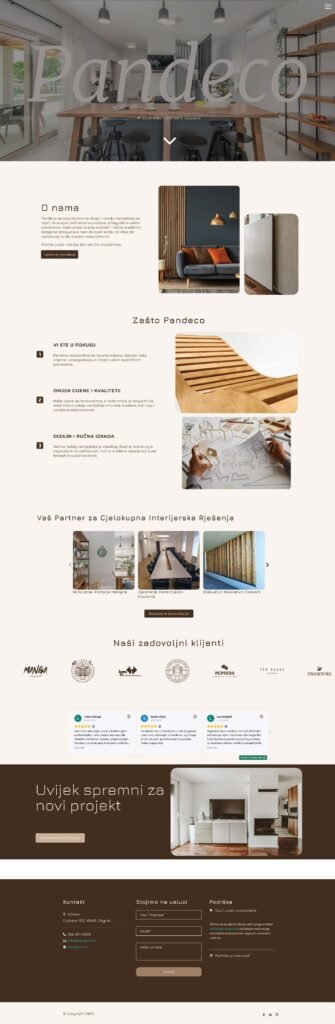 Za tvrtku Pandeco, specijaliziranu za namještaj po mjeri, izradio sam sveobuhvatni vizualni identitet. Moj rad uključivao je dizajn novog loga, odnosno brandmarka, koji odražava preciznost i individualnost njihovih proizvoda. Osim toga, razvio sam potpuno novu web stranicu, osiguravajući da online prisutnost Pandeca vjerno predstavlja kvalitetu i estetsku vrijednost njihovog namještaja po mjeri.